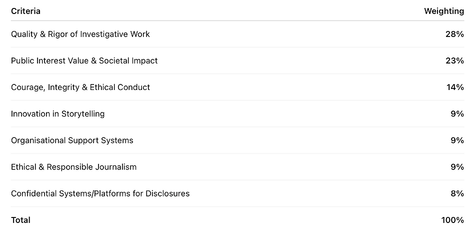 This framework draws from internationally recognised investigative journalism benchmarks, including: